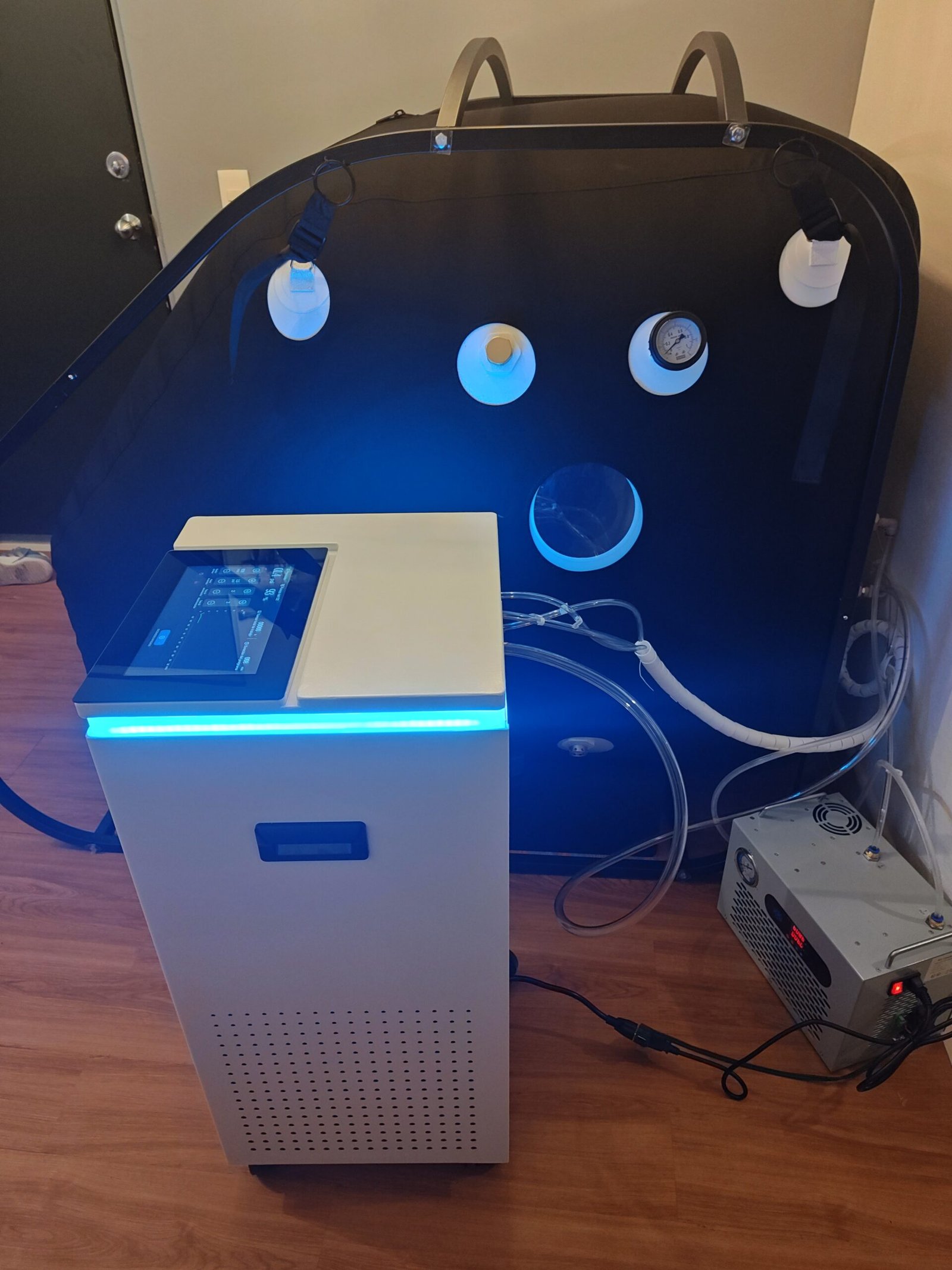 La cámara hiperbárica es un dispositivo médico para aplicar una presión atmosférica elevada de oxígeno puro al cuerpo, con el fin de que este elemento llegue a través del torrente sanguíneo a las áreas donde existe una deficiencia.